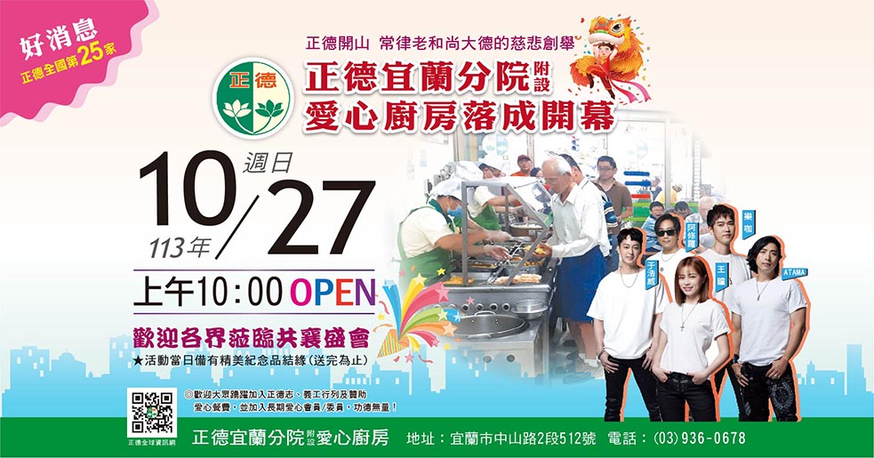 【正德愛心廚房】八年愛心不斷燃,星光入廚,愛心滿溢:正德愛心廚房第25家將於113年10/27宜蘭據點啟動,共守弱勢