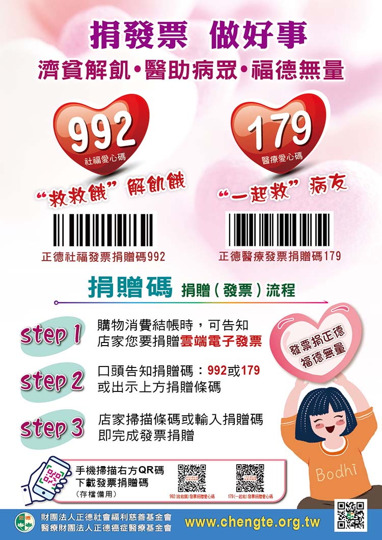 【正德機構】發票捐贈愛心碼-社福捐贈碼〈992〉