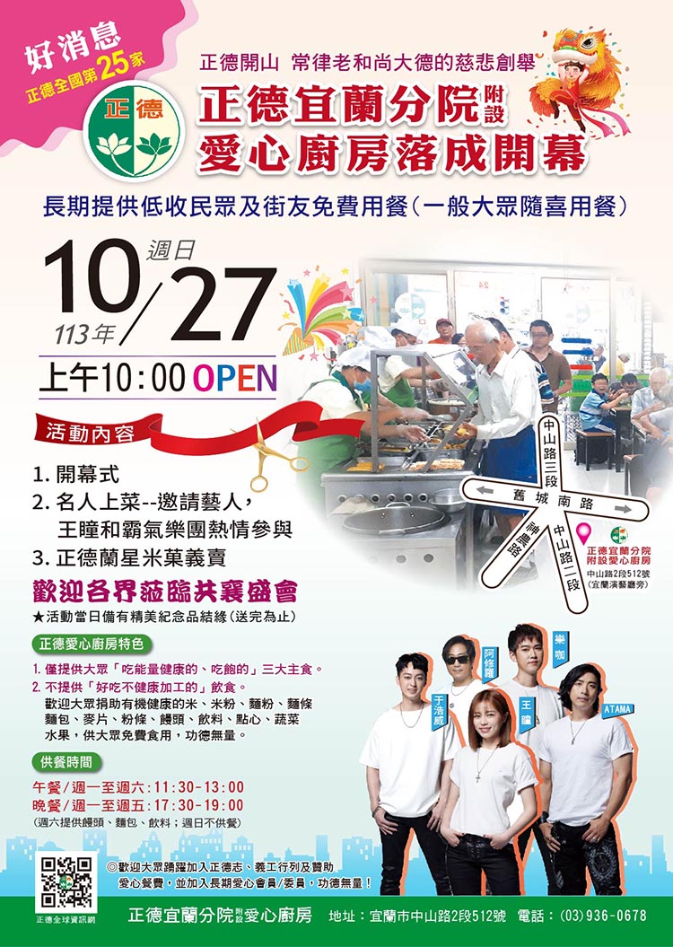 🎉活動地點:宜蘭市中山路2段512號 (正德宜蘭分院附設愛心廚房)