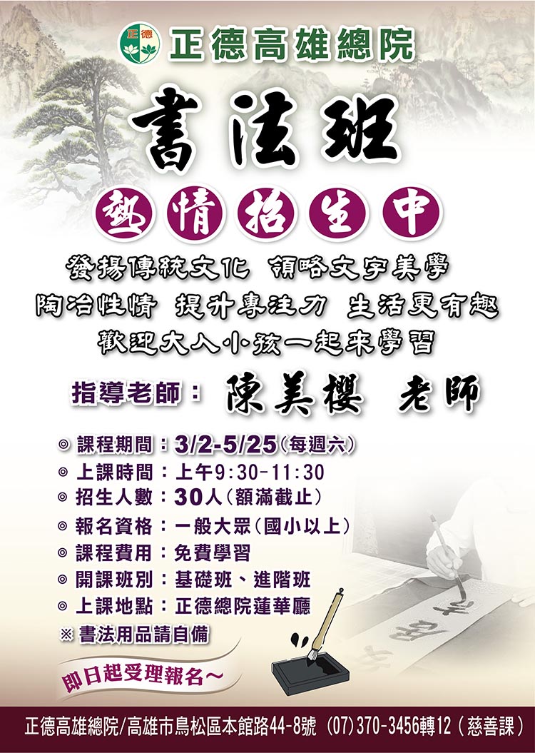 【正德各院】113年 書法班 熱情招生中-正德高雄總院