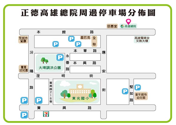 【正德佛堂高雄總院 周邊停車場分佈圖】