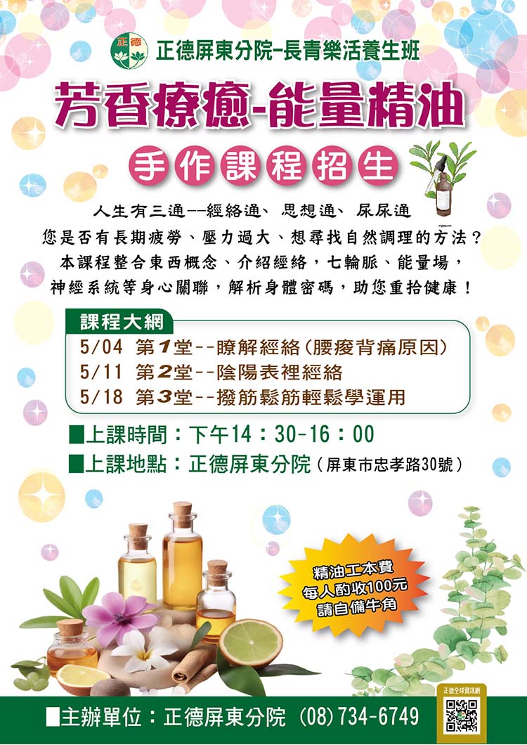 【活動回顧】114年5月 芳香療癒 × 能量精油🌿 正德樂活長青班-正德屏東分院