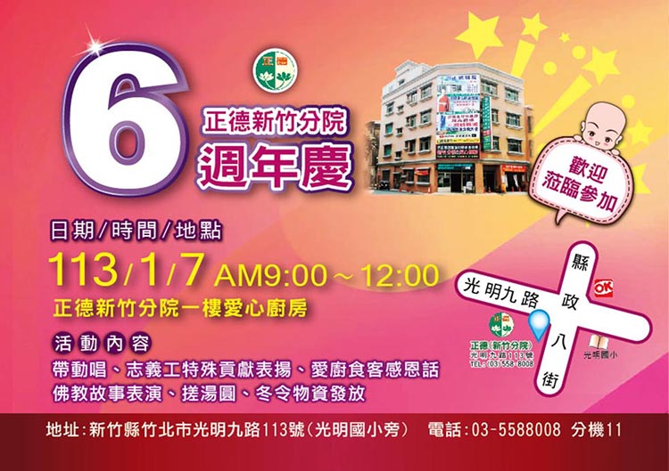 【正德各院】113年1/7 正德新竹分院6週年慶🎉🎉