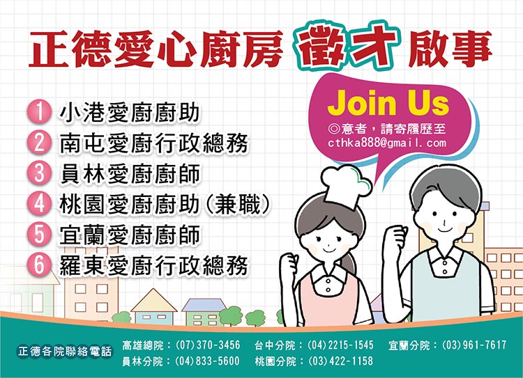 【正德愛心廚房】114年 全國愛心廚房徵才中
