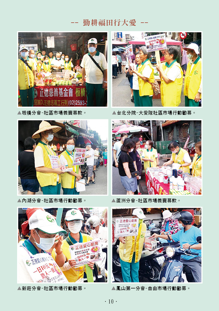 正德各院志工義工行一己之力,於各地展開行動勸募。