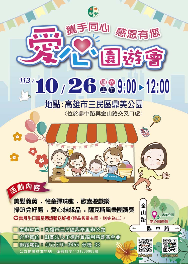 【社區愛心活動】113年10/26 和樂鄰里 共創溫馨社區-正德社會福利慈善基金會|高雄三民區鼎泰里